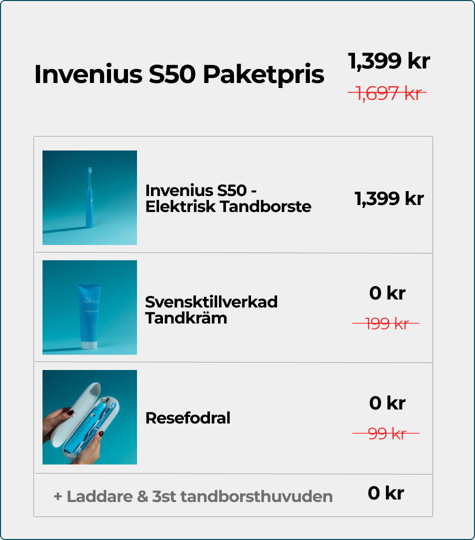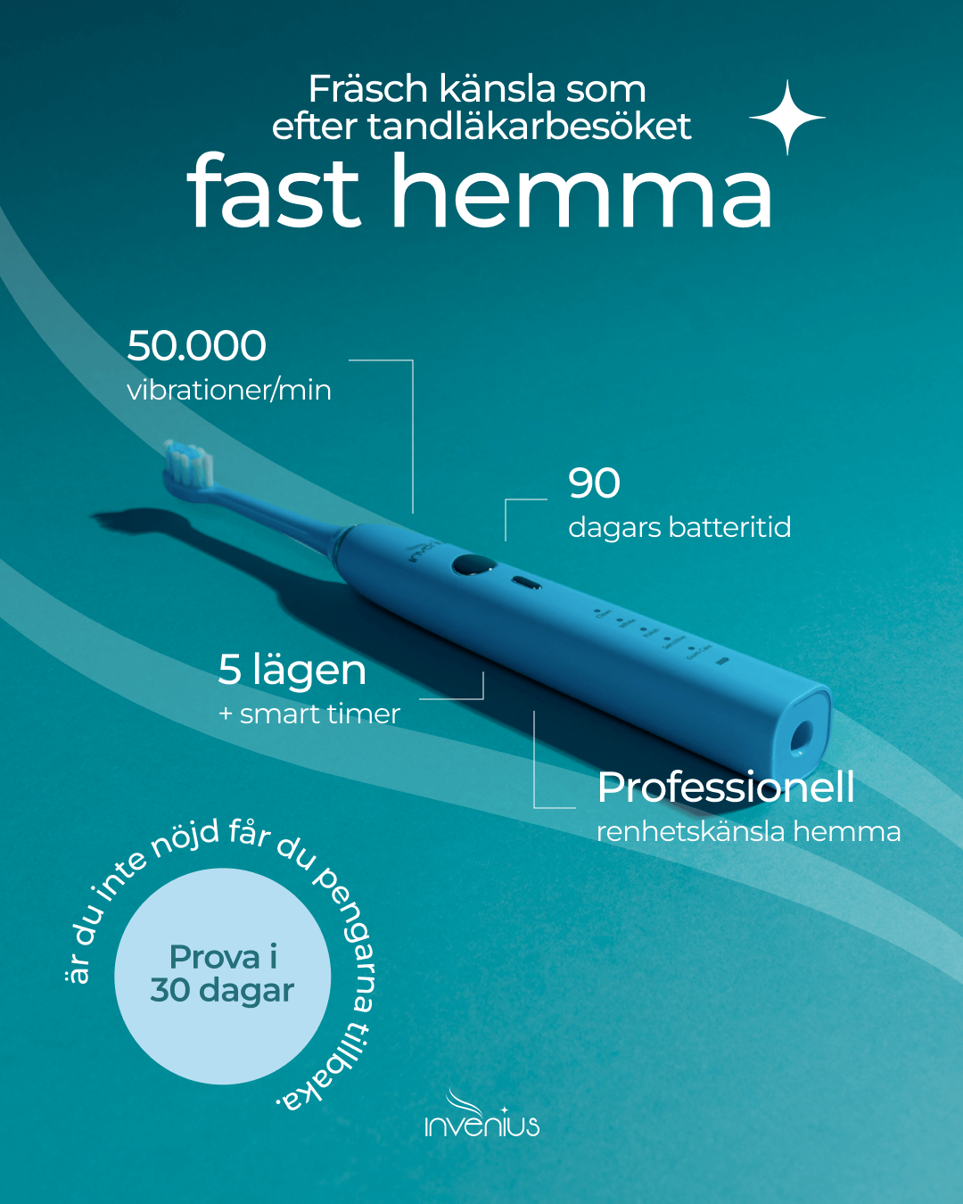 Invenius med sonisk teknologi ger 50 000 vibrationer per minut och tar bort upp till 10x mer plack än en vanlig tandborste.