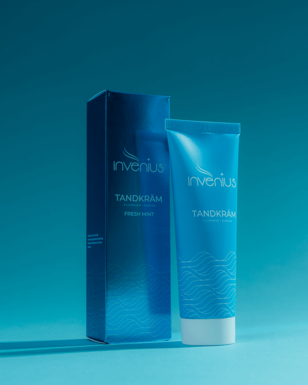 Invenius tandkräm är exklusivt utvecklad för att användas med vår soniska tandborste – för maximal effekt och ett märkbart vitare leende.